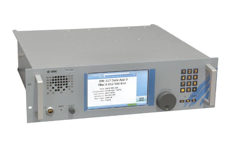 HMK’s HF Radio Series 3000 is a family of software-based, multi-purpose, high-performance and modular equipment in the frequency range 10kHz to 30MHz (receive) and 1.5MHz to 30MHz (transmit).