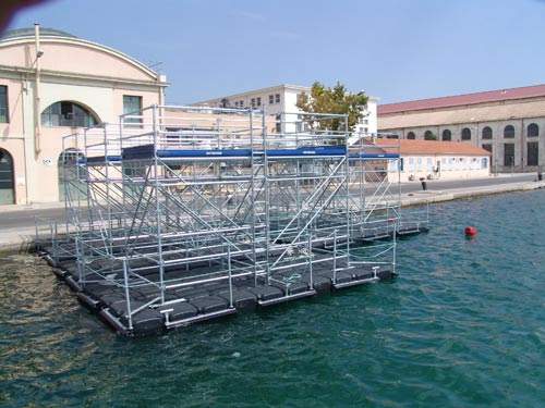 Aside from the naval applications, the Cubisystem is utilised in a broad range of industries. The solution has proved invaluable to the police and infantry as floating helicopter landing pads, to the public works as working platforms and transport barges, and even floating performance stages for events such as live concerts.