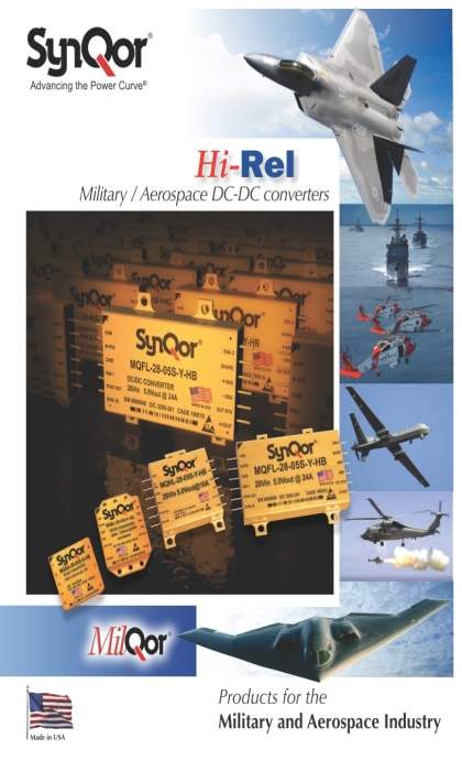 The MilQor® series of high-reliability (hi-rel) and mil-COTS DC-DC converters and electromagnetic interference (EMI) filters brings SynQor’s field-proven, high-efficiency, synchronous-rectifier technology to the military / aerospace industry.