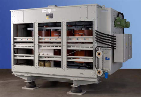 We have supplied 60Hz propulsion transformers with cast resin coils, aluminium conductor windings, 6,600V primary voltage and 690V secondary voltage for FREEM frigates. They include an air-forced and water-forced cooling system for the maximum control of internal temperatures and an IP44 enclosure for maximum protection and isolation from the room environment.