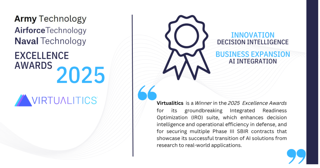 Global Defence Technology (GDT): First of all, congratulations on Virtualitics’ recent wins in both Innovation and Business Expansion at the Army, Airforce and Navy Technology Excellence Awards. How do these recognitions fit into your broader vision for the role of AI in defense?