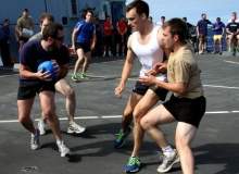 More traditional sports such as football, rugby, netball and golf often take place whenever a ship comes to port, which works as an ice breaker with other navies or local clubs around the world. But when it comes to a dip off the side it’s a case of ‘water, water everywhere but not a drop to swim’ when at sea.