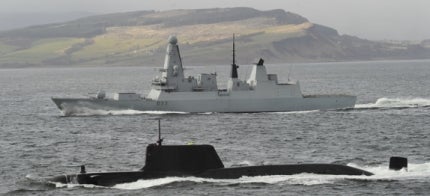 An Astute-Class submarine sails alongside HMS Dauntless. Image courtesy of BAE Systems.