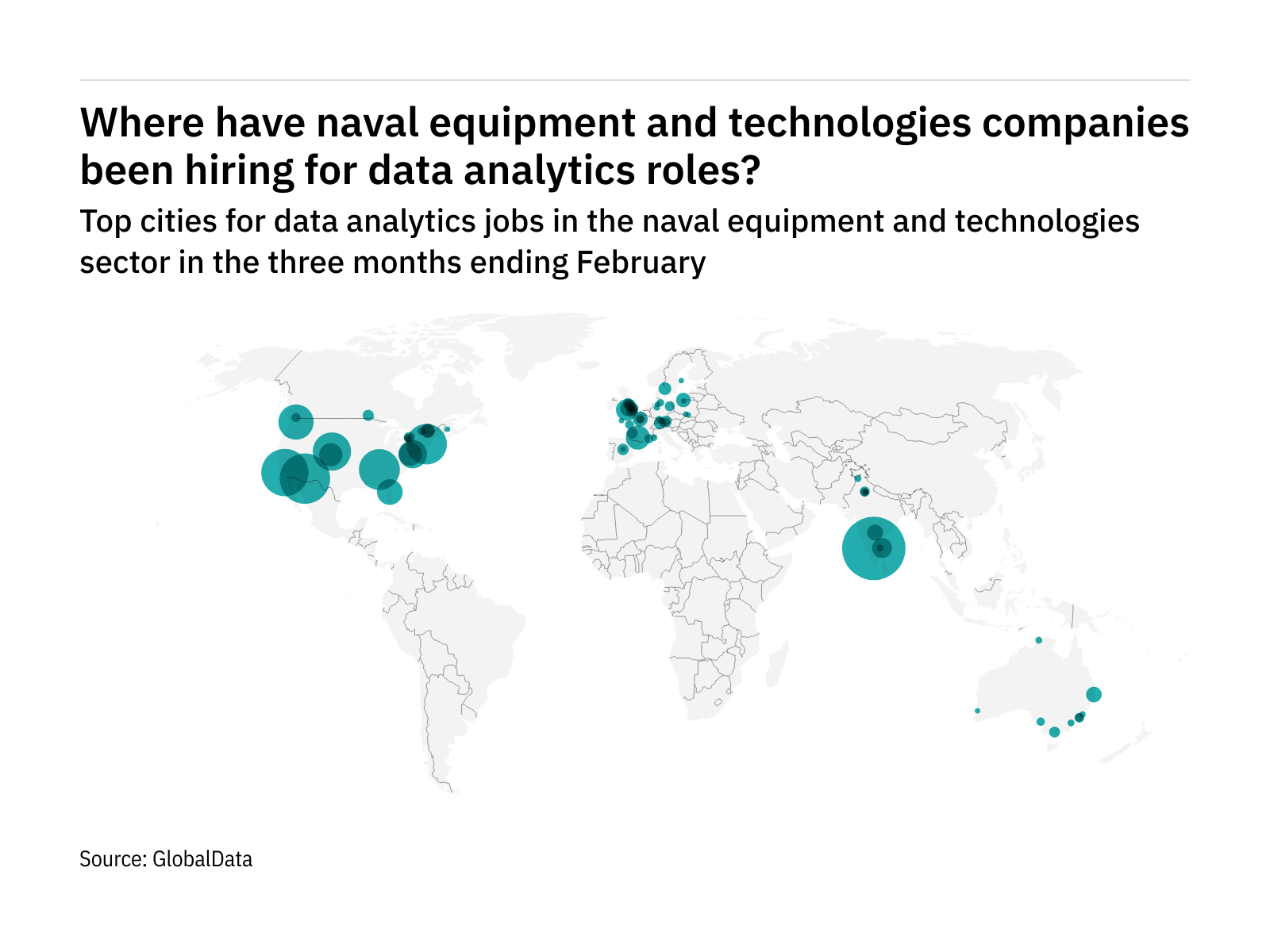 Which cities are the biggest hubs for data analytics workers in the naval industry?