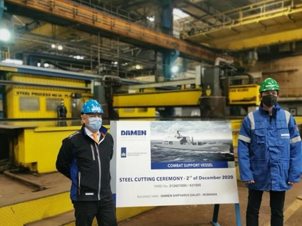 Damen Schelde Naval Shipbuilding (DSNS) has performed the first steel cut for the Royal Netherlands Navy’s (RNLN) combat support ship ‘Den Helder’.