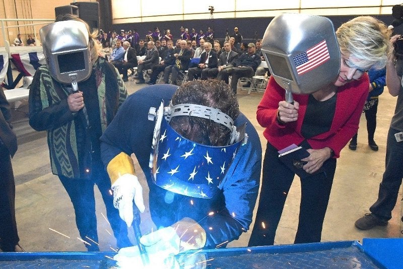 The event was marked by a ceremony during which former Michigan governor and the ship’s sponsor Jennifer Granholm had her initials welded into the keel plate.