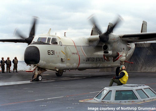 Image: A C-2A aircraft on an aircraft carrier. Photo: courtesy of Northrop Grumman.