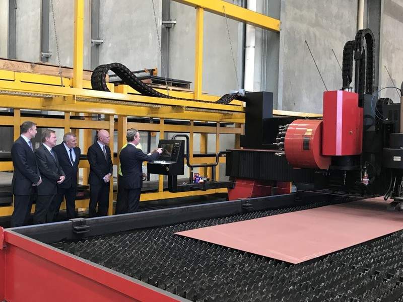 Image: Australian Minister for Defence Industry Christopher Pyne cutting steel on the first Pacific Patrol Boat Replacement vessel for the Commonwealth of Australia. Photo: courtesy of Austal.