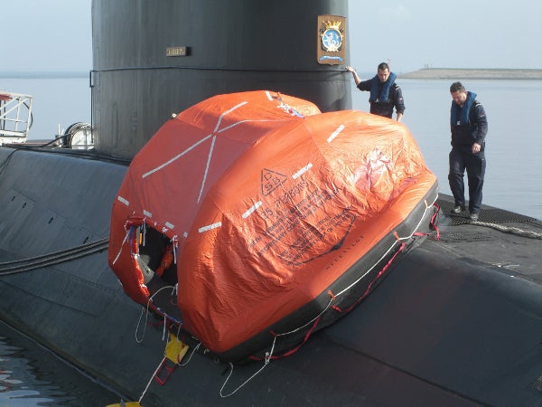 Image: Babcock’s life raft during trials aboard a Walrus-class submarine. Photo: courtesy of Babcock International.
