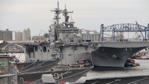 Image: USS Wasp stationed at a shipyard. Photo: courtesy of BAE Systems.