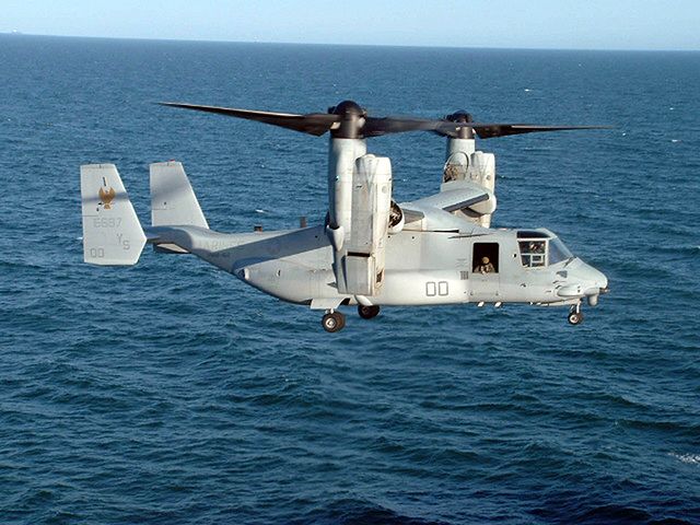 Image: Marine corps MV-22 Osprey flying over sea. Photo: courtesy of US Navy.