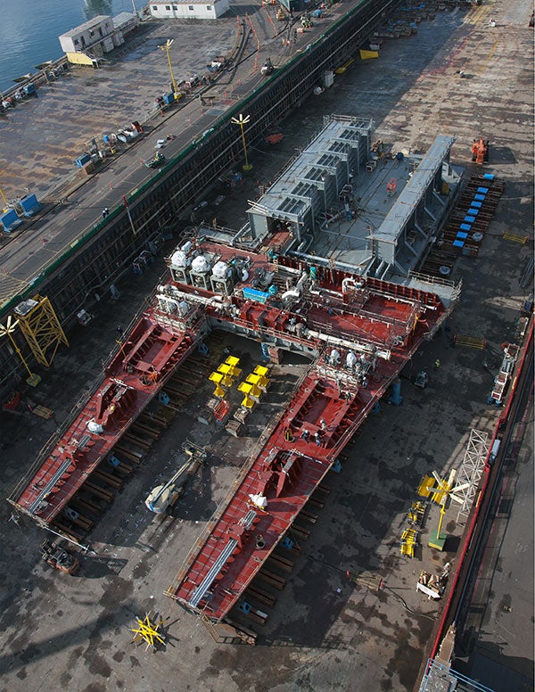 Image: aerial view of the USNS Montford Point (MLP-1). Photo: courtesy of NASSCO / General Dynamics Corporation.