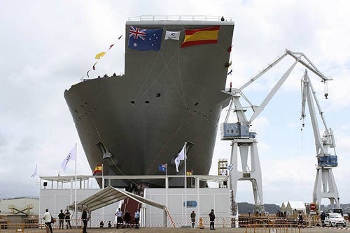 Image: The second Canberra-class landing helicopter dock (LHD), HMAS Adelaide, at Navantia shipyard, Spain. Photo: courtesy of Royal Navy.