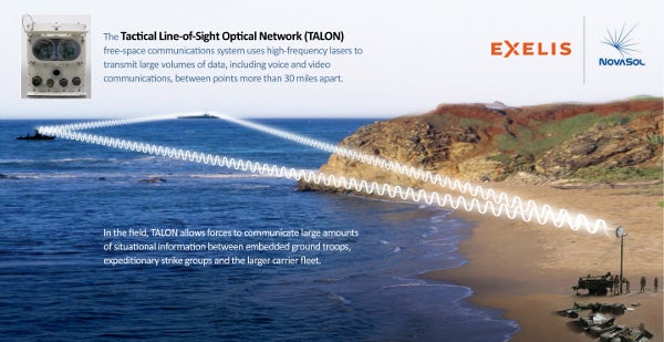 Exelis and Innovative Technology Solutions (doing business as NovaSol) have collaborated with the US Naval Research Laboratory (NRL) to conduct series of evaluations of the tactical line-of-sight optical network (TALON) free-space optical communications system.