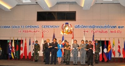 Image: Exercise Cobra Gold 2013 opening ceremony with participating nation’s officials. Photo: courtesy of Singapore Government.