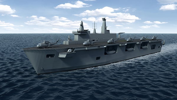 Capable of carrying more than 1,100 personnel, 100 armoured vehicles and 12 helicopters, the 230m-long LHDs will be fortified with four 20mm automated guns, six 12.7mm machine guns, anti-torpedo towed defence system, and Nulka active missile decoy system.