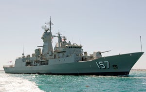 Image: The Royal Australian Navy’s Anzac-class frigate, HMAS Perth at Fleet Base East in Sydney, Australia. Photo: courtesy of Saberwyn.