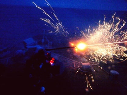 Image: HMS Chiddingfold test fires 30mm main gun during operational sea training. Photo: courtesy of the Royal Navy.