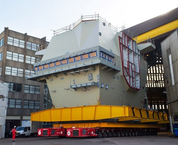 Following its transfer to Scotland in mid-June, the 52m-long and 14m-wide island will be integrated on the aircraft carrier’s flight deck before the end of next month.