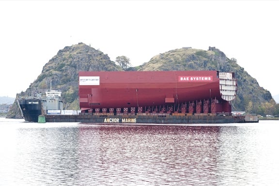 Image: HMS Queen Elizabeth’s aft section on its way to Rosyth facility. Photo: courtesy of Royal Navy.