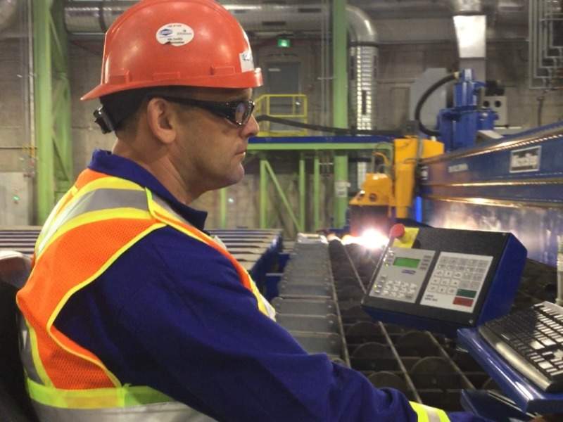Image: Halifax Shipyard worker cuts components for Canada’s first Arctic and offshore patrol ship. Photo: courtesy of Irving Shipbuilding.