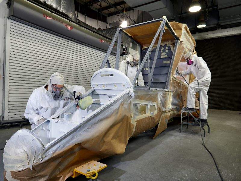 Image: The first K-MAX aircraft manufactured at Kaman’s Jacksonville facility is painted at the company’s Bloomfield plant. Photo: courtesy of Kaman Aerosystems.