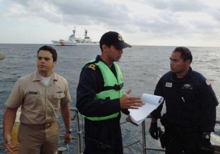 Image: US Coastguard and Mexican Navy personnel onboard a vessel during exercise. Photo: courtesy of Lt. Andrea Psimer.