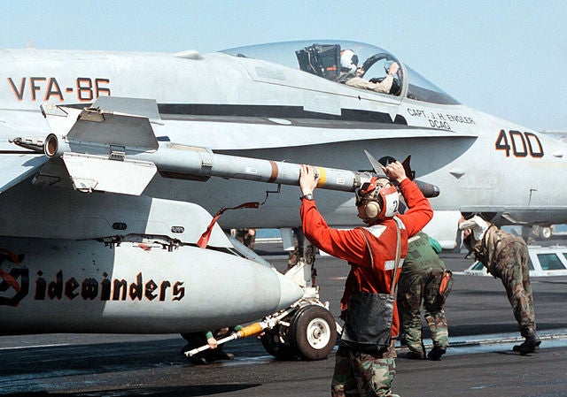 Image: Raytheon’s Sidewinder missile being equipped onto an aircraft stationed aboard an aircraft carrier. Photo: DoD photo by petty officer 3rd class Brian Fleske, US Navy.
