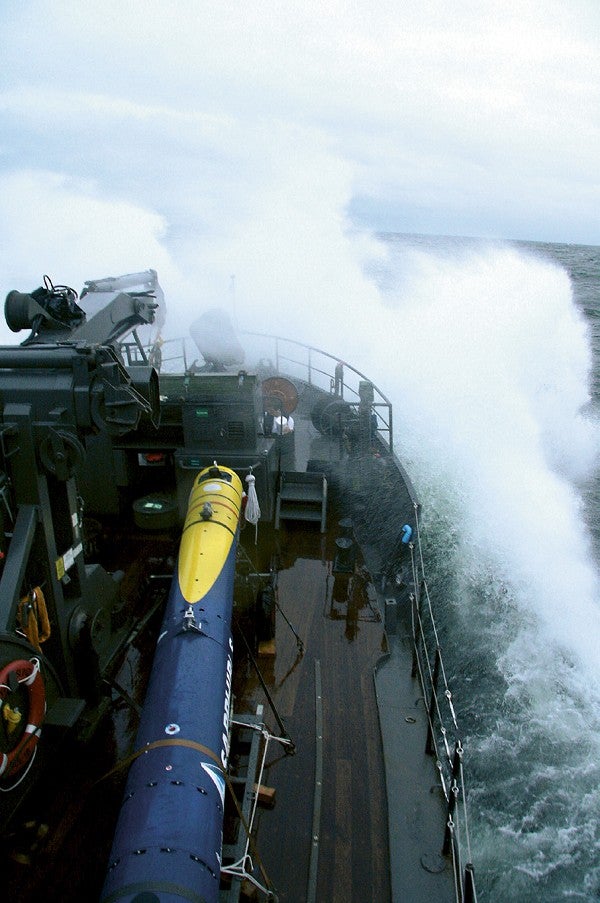 In additiona, the vehicle uses advanced onboard sensors such as dual flank-array sonar and high-resolution gap-filler sonar to perform long-term mine-reconnaissance missions with increased speed.