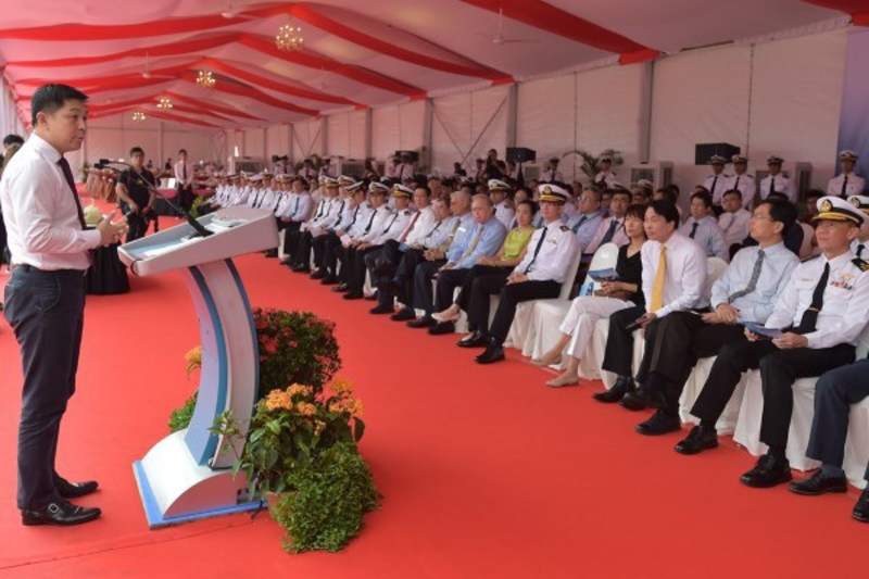 Image: Speaker of Parliament Mr Tan Chuan-Jin delivering a speech at the launching ceremony of the fifth littoral mission vessel, Indomitable. Photo: courtesy of the Government of Singapore.