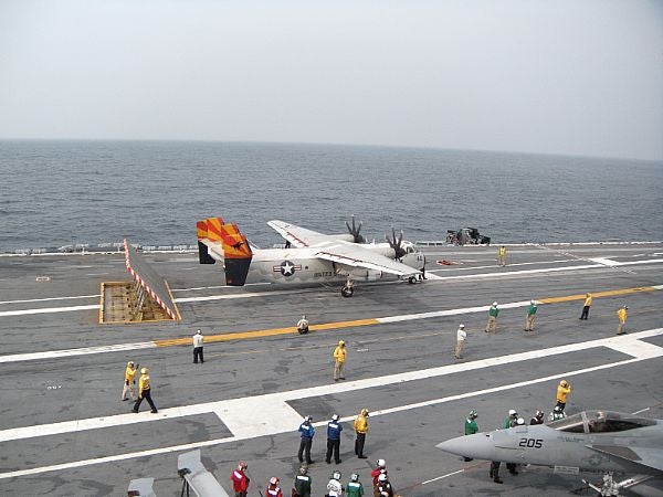 Image: US Navy’s C-2A Greyhound aircraft prepares to launch from an aircraft carrier. Photo: courtesy of US Navy mass communication specialist 2nd class John Shepherd/Released.