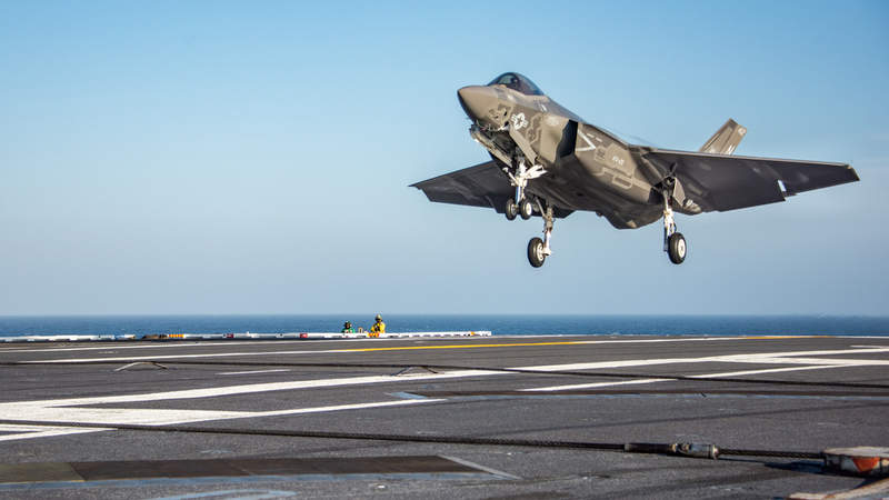 A navy F-35C Lightning II aircraft both landed on, and launched from, USS Carl Vinson during the operations, which were conducted in both day and night conditions.