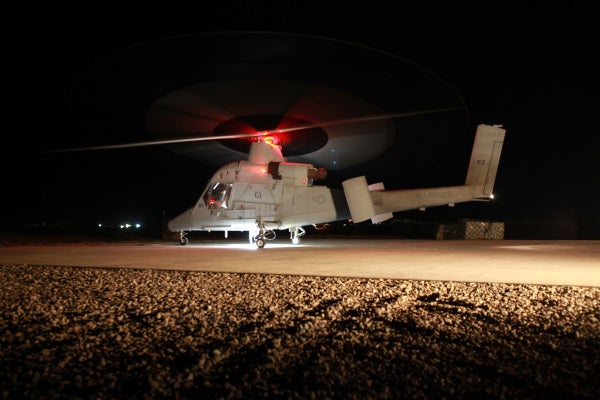 Image: The K-MAX unmanned cargo helicopter readies to take off on another mission. Photo: courtesy of US Marine Corps.