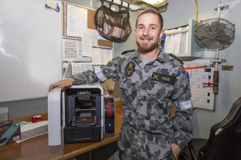 HMAS Warramunga able seaman electronics technician Luke Pozzi has already used the new 3D printing equipment to design, print and fit a temporary replacement part at sea when faced with an issue relating to a pressure sensor, which restored the system to its full functionality.