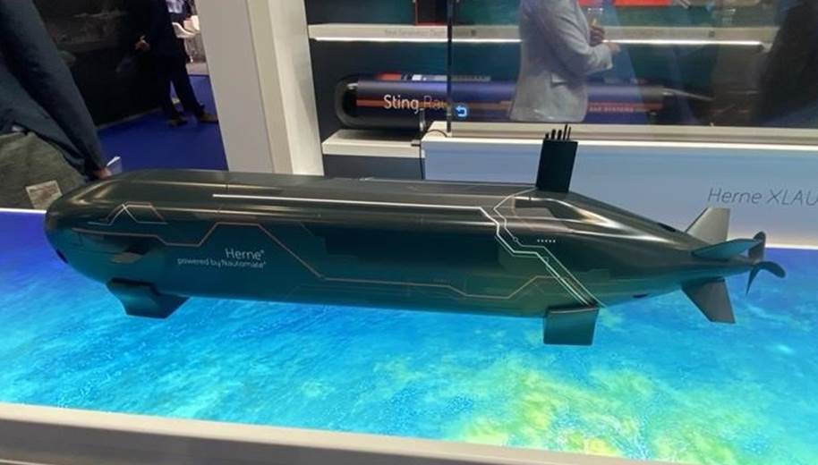At the BAE Systems stand, the global defence prime displayed its Herne extra large autonomous underwater vehicle (XLAUV).