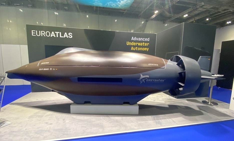 One prominent system on display is the Greyshark autonomous underwater vehicle (AUV) developed in close collaboration among German suppliers: EUROATLAS, EvoLogics and Fassmer.