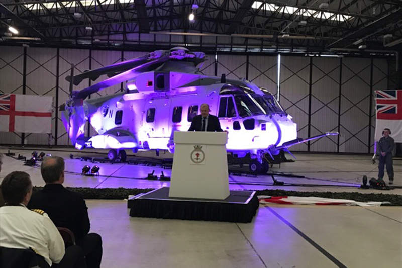 The UK has received the delivery of the first AW101 Commando Merlin Mk4 helicopter during a ceremony at Royal Naval Air Station Yeovilton, Defence Procurement Minister Guto Bebb has announced.