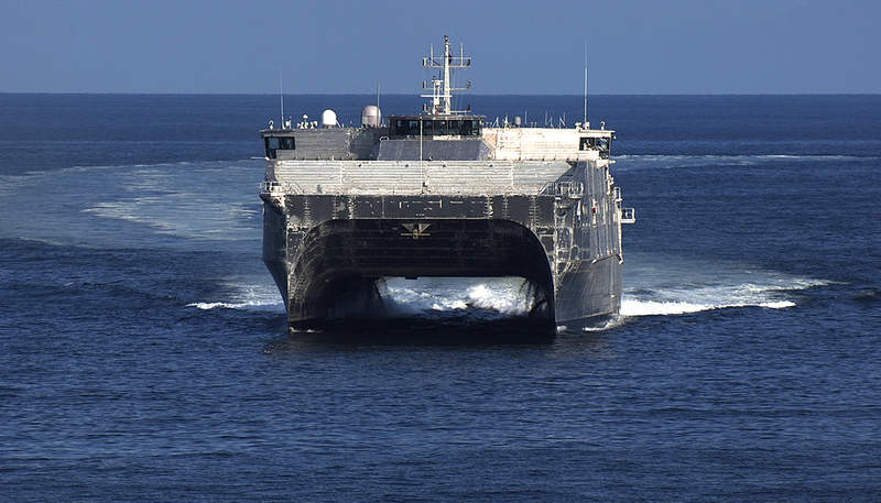 USNS Fall River is one of three expeditionary fast transport vessels in the US 7th Fleet area of responsibility, which primarily provides rapid intra-theatre transportation of troops and military equipment.