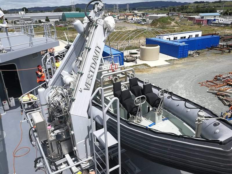 Vestdavit representative agency and partner Antelope Engineering New Zealand manager Alasdair Morrison said: “The PLAR davit has been especially adapted to replicate the keel supports and boarding arrangements for port and starboard handling.