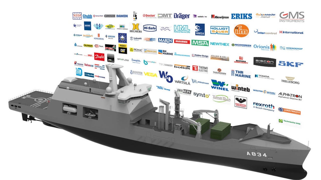 Based on the design of Karel Doorman, HNLMS Den Helder will be approximately 180m-long and will have a displacement of 22,400t. It will mainly supply fuel, ammunition and goods to other naval vessels at sea.