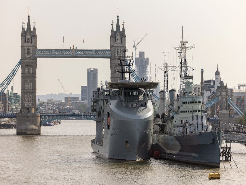 The dedication ceremony for RFA Proteus was held in London, alongside the historic warship HMS Belfast in October 2023. Credit: DE&S Crown Copyright 2017.