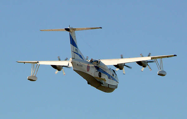 The US-2 aircraft can fly at a maximum altitude of over 6,000m. It has the cruising speed of 480km/h and maximum speed of 560km/h. The maximum range of the aircraft is over 4,500km. The maximum take-off weights of the aircraft on land and water are 47.7t and 43t respectively.