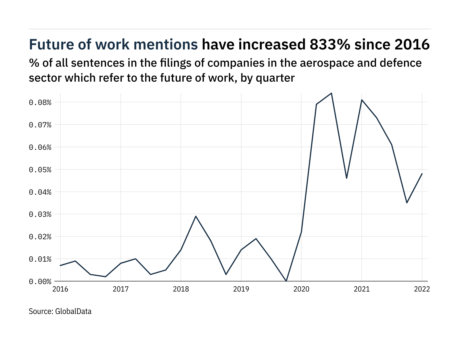 Mentions of the future of work within the filings of companies in the aerospace and defence sector rose 37% between…