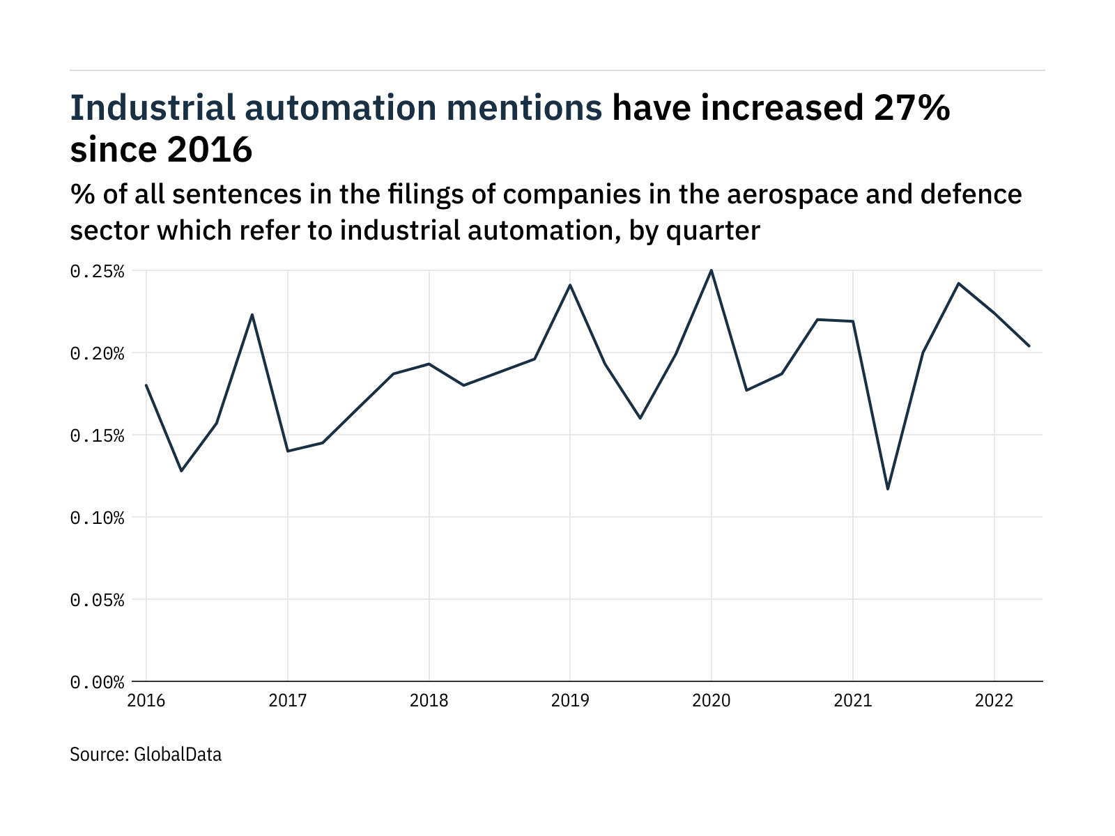 Mentions of industrial automation within the filings of companies in the aerospace and defence sector were 74% higher in the…