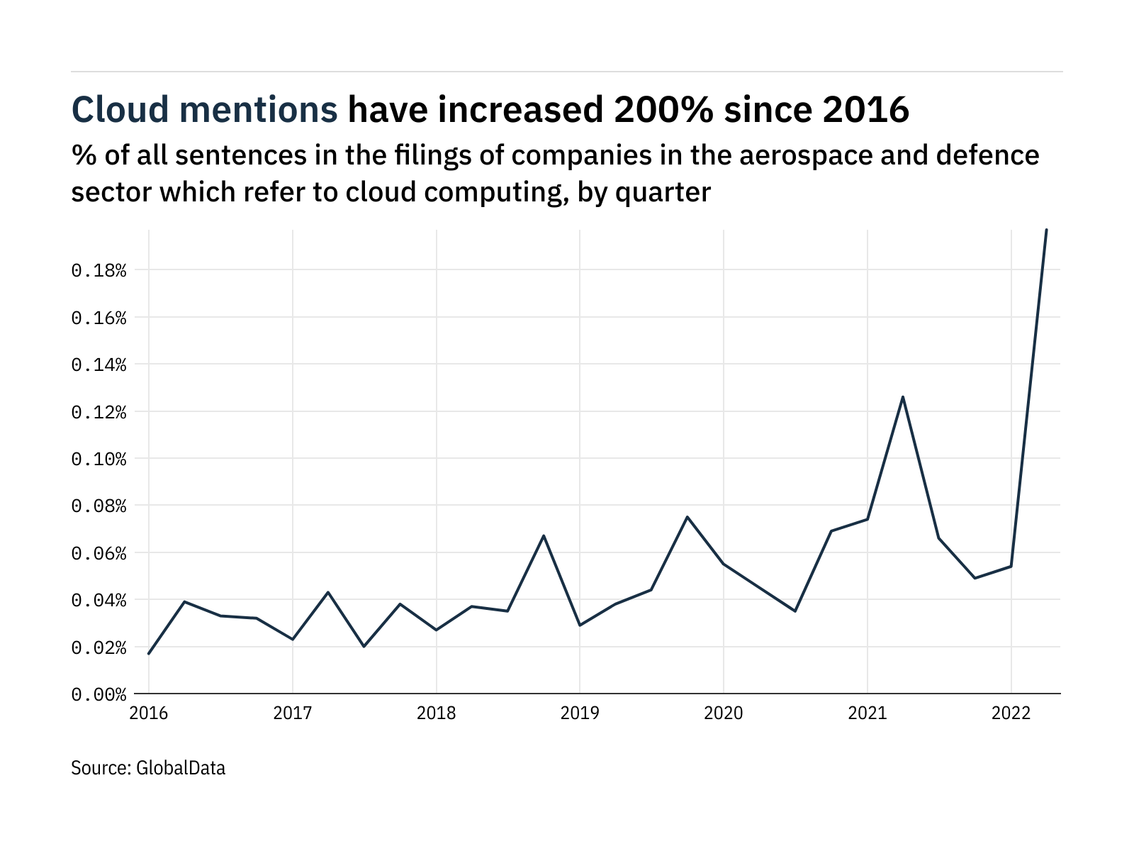 Mentions of cloud computing within the filings of companies in the aerospace and defence sector rose 265% between the first…
