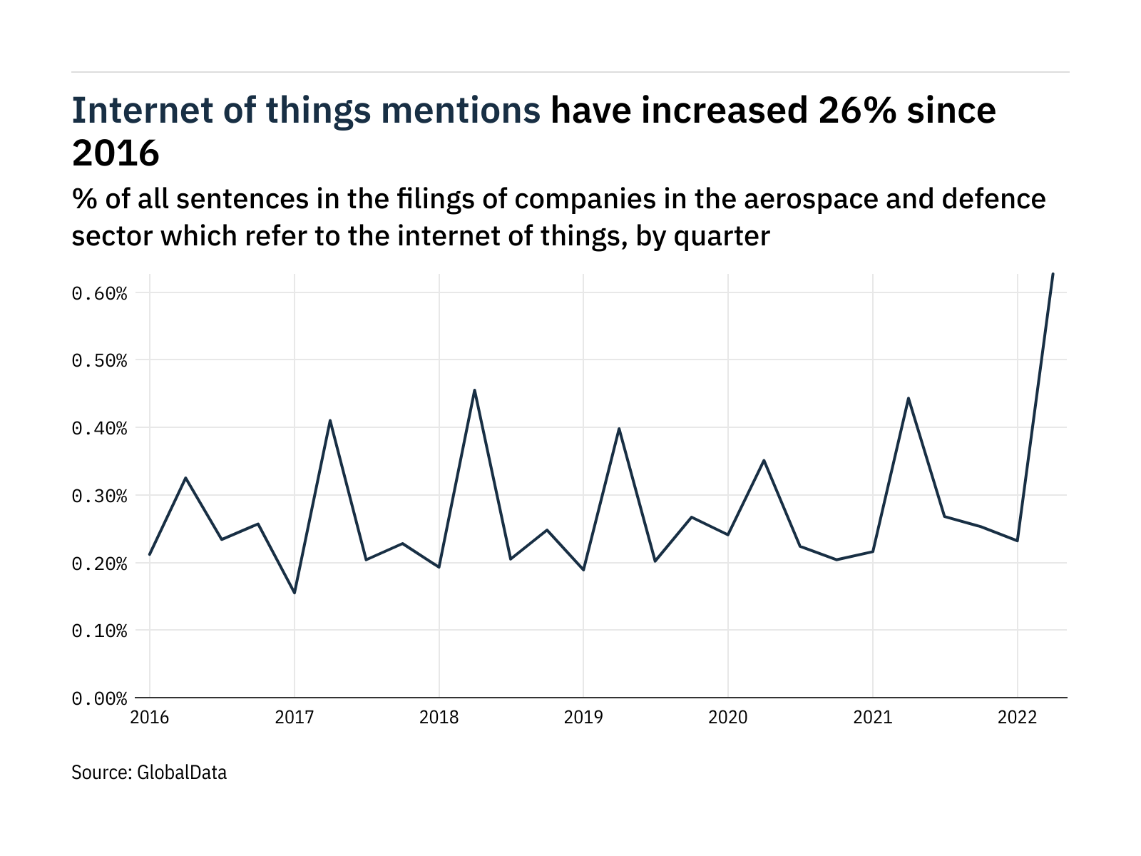 Mentions of the internet of things within the filings of companies in the aerospace and defence sector rose 170% between…